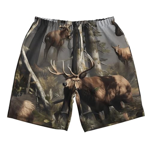 • Hunting Deer Bear Elk Printed Swim Trunks for Men: These surf shorts can be worn in and out of the water during summer vacation. Our Men's Sweat Shorts Swimsuits using dye-sublimation technology that allows graphics lifelike, vibrant colors and comfy material will bring you a cool summer