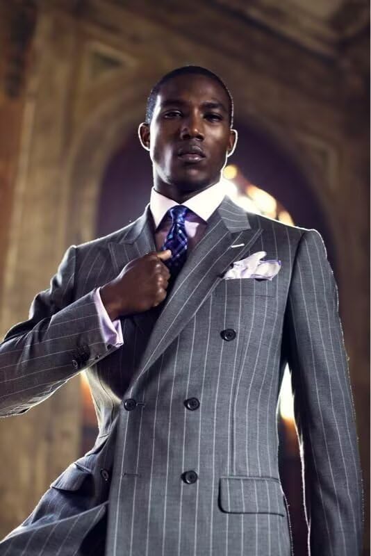 • 【About Features】-Men Pinstripe Suit 2 Piece Set Double Breasted Business Casual Wedding Party