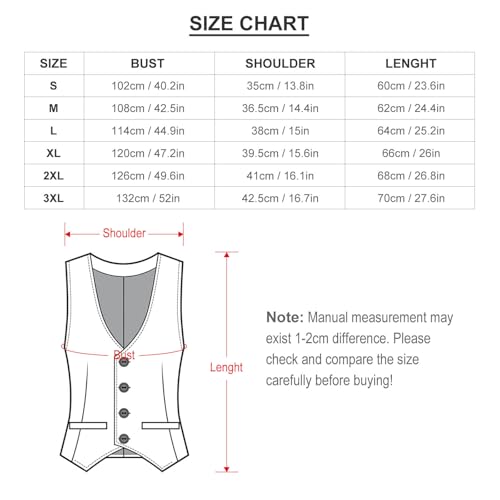 • Classic Design: Timeless slim fit with 4 button closure, V Neck. A timeless classic that no wardrobe should be without, this novelty suit vests is one great item for your daily time.