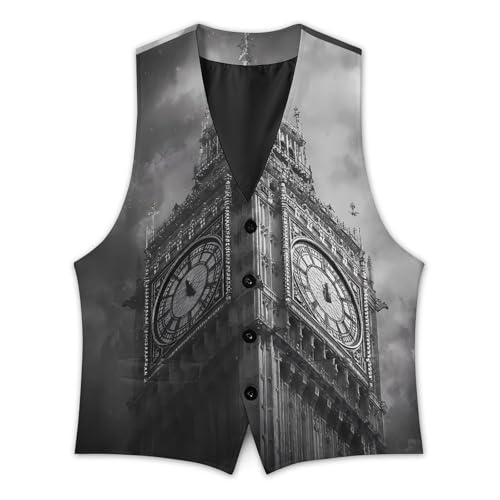 Big Ben London White And Black Suit Vest for Men Slim Fit Sleeveless Jacket V Neck Business Waistcoat Button Up Dressy Top 5