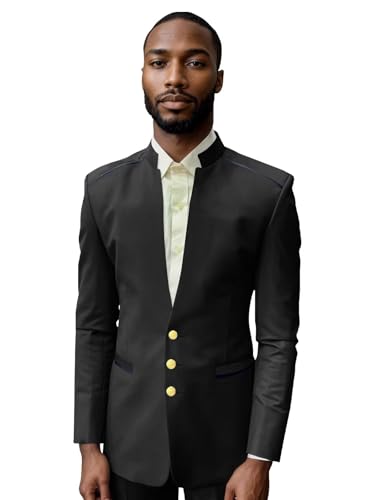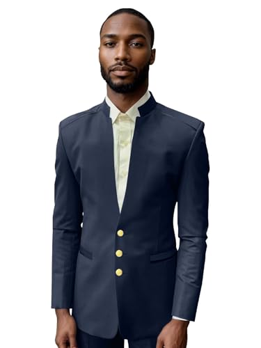 Men's Suit 2 Piece Slim Fit Chinese Mandarin Collar Traditional Set for Wedding Groomsmen Prom 4