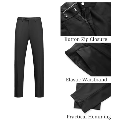 • 【Style】Men's suit vest with sickle shawl lapel, slanted 3 button closure, fashionable and casual, with adjustable belt at the back. Solid color suit pants for men with button and zipper closure, flat front, with adjustable hidden elastic band to provide room for your tummy to move