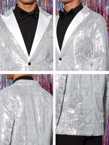 Lars Amadeus Men's Sequin Suit Jacket Peak Lapel Sparkly Party Show Glitter Sports Coat 4