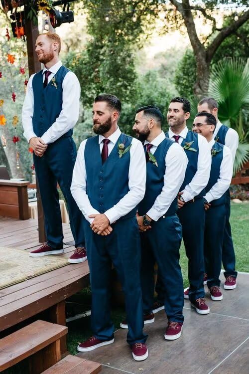 Mens Vest and Pants Suit Set Slim Fit 2 Piece Wedding Suits for Groomsmen Business Prom Homecoming Formal Set 6