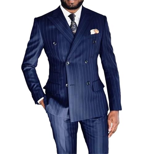 Mens Striped Male Suit Formal Casual Wedding 2 Pieces Business Peak Lapel Double Breasted Blazer with Pants 2