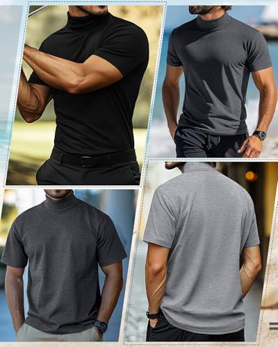 3 Pack Men's Turtleneck T Shirts, Cotton Short Sleeve Mock Neck Undershirt Summer Casual Basic Pullover Tops 2