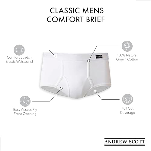 HOT ! Andrew Scott Men's Cotton Briefs, Soft and Breathable Cotton Underwear with Comfort Waistband, Multipack & Bulk Wholesale