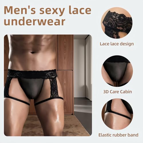 • 🩲Sexy low waisted lace design enhances male charm(Sexy & Confidence-Boosting) "Designed with low-rise lace trim, these men's underwear add a sensual touch to your intimate moments or daily wear. The sheer mesh fabric enhances allure while keeping you comfortable. Perfect for special nights or boosting confidence, these panties make you feel irresistible."Size: XL