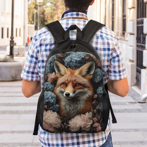 Durable Unisex 16 Backpack Fox and Flowers Water Resistant for Work Travel & Outdoor Adventures 16 Inch Devices 1
