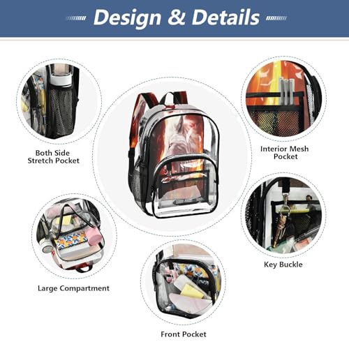 More information about Wolfs with Fire Clear Backpack - Stadium Approved Large 15.7-inch Waterproof Transparent Bag for Sports, Concerts, Work, Travel#121