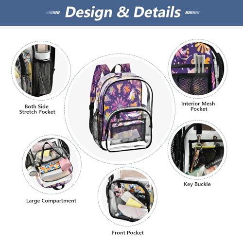 • Ergonomic Comfort – The heavy-duty clear backpack includes padded, adjustable shoulder straps with reinforced stitching for extra support. Wider straps distribute weight evenly, reducing shoulder strain during long wear.