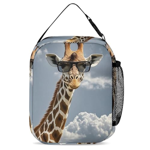 HOT ! Giraffe Wearing Sunglasses Backpack Set 3 Piece, Durable Backpack Insulated Lunch Bag Portable Pencil Case for Men Women