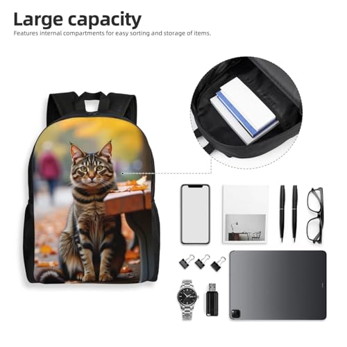HOT ! Comfort Fit Unisex Tabby C Sitting The Ground Next to Bench Backpack Gre Durable Daily Commute Travel Adventures 16 in