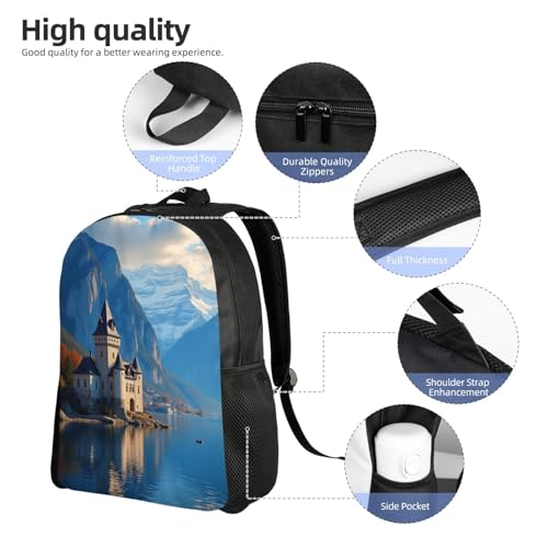 HOT ! Comfort Fit Unisex Jigsaw Puzzle Castle The Shore of Lake Mountains The Backpack Durable Commute Travel Adventures 16 in
