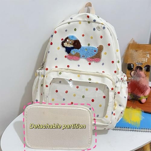 Colorful Polka Dot Backpack with Embroidered Dog Design - Waterproof Nylon Material and Transparent Layer (Scarf Puppy) 7