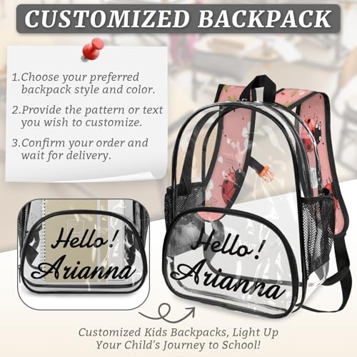 HOT ! Ladybirds Personalized Large Clear Backpack Heavy Duty for Stadium Approved Custom Flower Ladybugs PVC Transparent Backpack with Name See Through Bag for Concerts