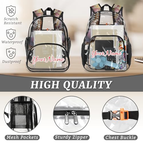 HOT ! Personalized Large Clear Backpack Stadium Approved Heavy Duty PVC Plastic Custom Transparent Backpacks See Through Bag with Name, Seashells Beach Themed