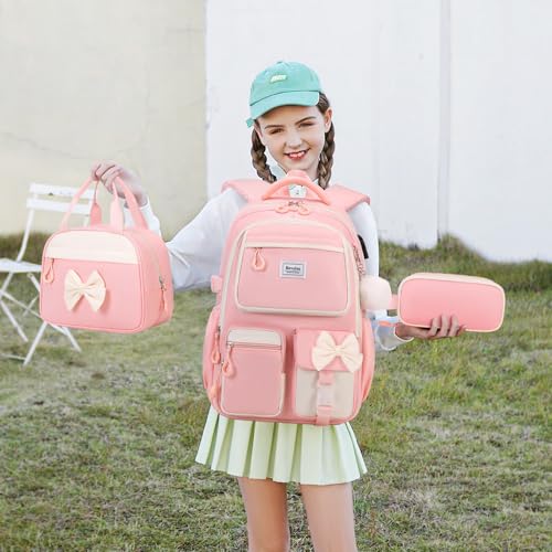 More information about Bevalsa Backpack for Gilrs, Cute Bow School Bags for Kids with Lunch Bag & Pen Case, Bookbag for Girls Children Teens Elementary Middle Student, Back to School Gift with USB Charging Port (Pink)