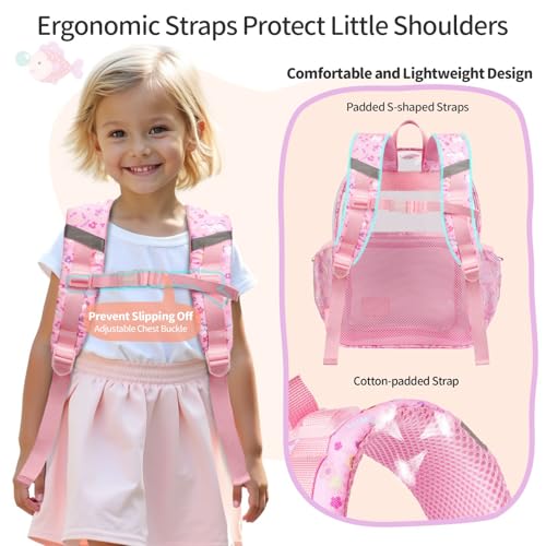 • Ergonomic Design For Growing Shoulders: Padded S-curve shoulder straps and adjustable chest clip distribute weight evenly; Keeps this cute school backpack comfy during long days or walks to the bus stop