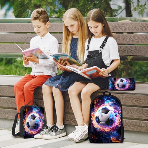 HOT ! Soccer Backpack Set for School, 17 Inch Casual School Bags with Lunch Box, Kids Daypack Bags and Pencil Case Set for Teens Boys Men Students