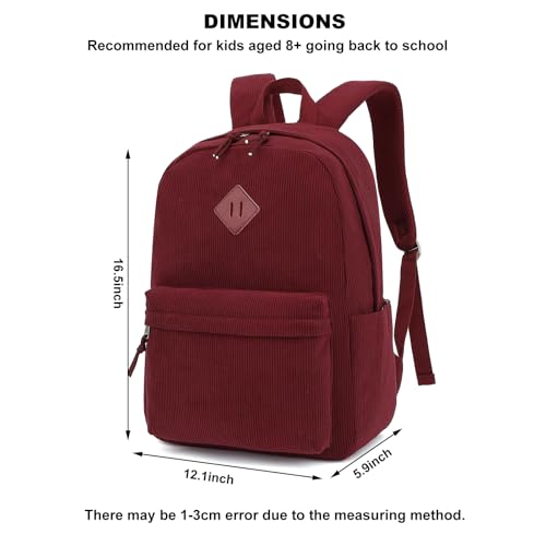 More information about Corduroy Backpack for Girls, Kids Teens Elementary Middle High School Bags Women College Bookbags Travel Daypacks (Wine)