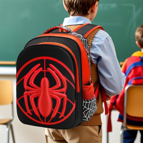HOT ! Kids School Backpack,15in Cartoon Spider Schoolbag with Pencil Case 3D Waterproof Book Bag for Elementary Boys Large Capacity Back to School Supplies,Black