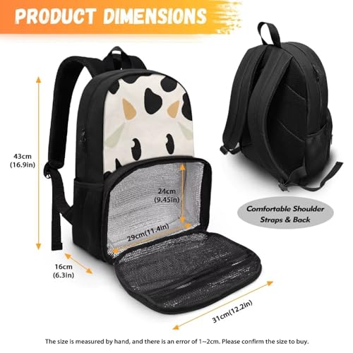 More information about Cow Print Kids 2-in-1 Backpack School Bookbag Boys Girls Backpack and Insulated Lunch Bag Travel Daily Backpack for Preschool Elementary Middle School