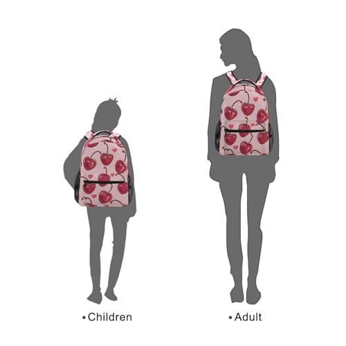 ALAZA Cherries Hearts Pink Backpacks for Girls Boys School Backpack Kids Bookbag 3rd 4th 5th Grade Elementary Students Daypacks Travel Laptop Shoulder Bag 6