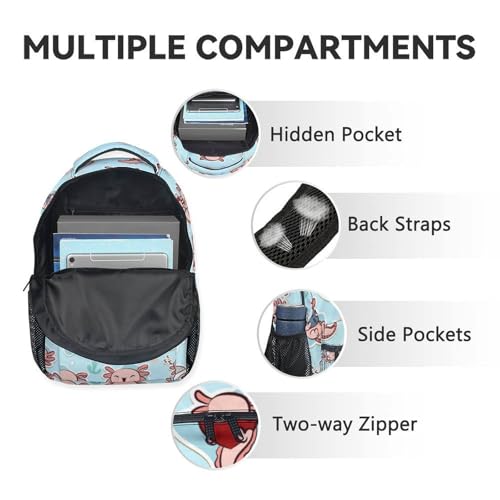 • Fashionable and Durable: Our axolotl kids backpack set is made of polyester, which is very durable. Pair it with a cute pattern for a stylish statement. Not only suitable for boys and girls to use in school, but also very suitable for everyday use