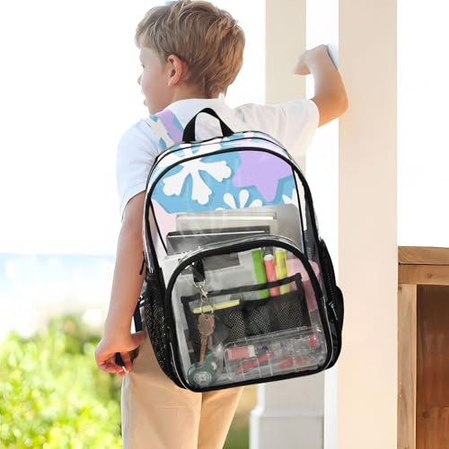 • Size: Measuring 10.6 x 7 x 15.7 inches,Our Kids Clear Backpack For School includes a main compartment, a medium front compartment features with mesh slots and key buckle for small items. Plus, the see through backpack offers two side mesh pockets for water bottles or umbrellas.
