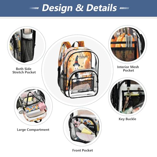 More information about Clear Backpack for School Maple Leaves Ghost Pumpkin Transparent Bookbag for Girls See Through PVC Boy Backpacks