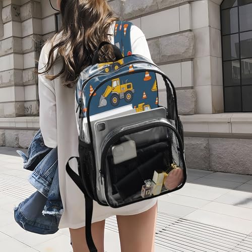 More information about Clear Backpack for School Yellow Truck Tractor Pattern Transparent Bookbag for Girls See Through PVC Boy Backpacks