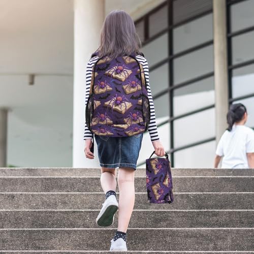 KLL Purple Spider Bat for Halloween Boys Backpacks With Lunchbox School Bag And Lunch Box Set For Boys 9-10 years 1
