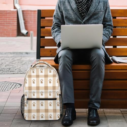 More information about Brown White Checkered Paws Kids Backpack, Lightweight School Bookbag Large Capacity Laptop Backpack Water Resistant Daypack Shoulder Bag for Teenager Boys Girls