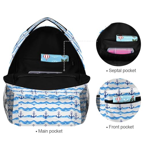 Cute Blue Anchor Wave Backpack for School Boys Girls Adults Kids Bookbag Laptop Bag 15L 6