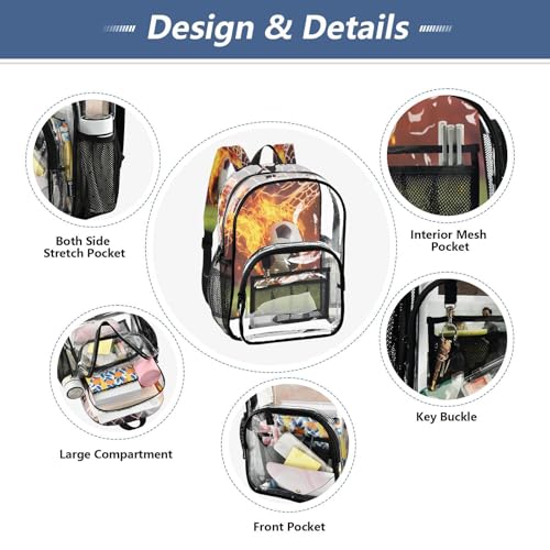 Soccer Flying with Fire Clear Backpack Heavy Duty See Through Transparent PVC BookBag for Kids Boy Girl School Work 7