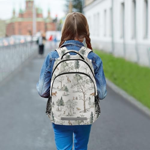 Watercolor Forest Scene with Fox Kid's Elementary Middle School Backpack for Son Daughter, Age 6-12 Back to School Backpack Bookbag Schoolbag for Boys Girls 3