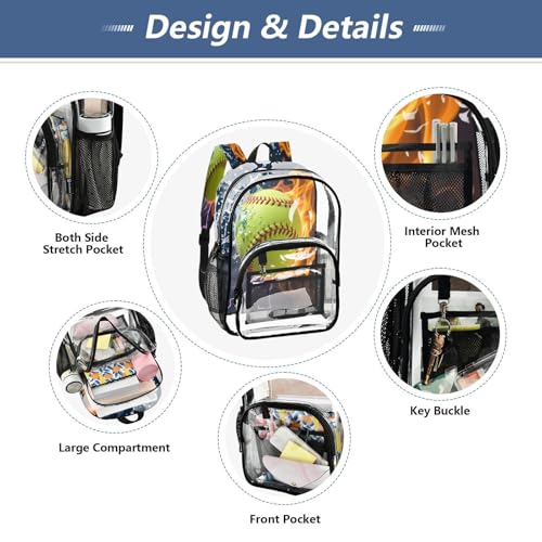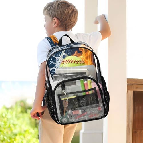 Green Baseball Fire Ball Water Clear Backpack Heavy Duty See Through Transparent PVC BookBag for Kids Boy Girl School Work 5
