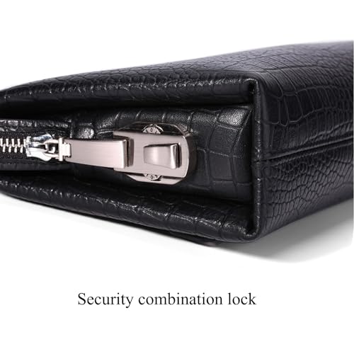 More information about Top Layer Cowhide Men's Clutch Bag, Large Capacity, Combination Lock, Alligator Texture Embosser, Detachable Wrist Strap Leather Clutch Bag.