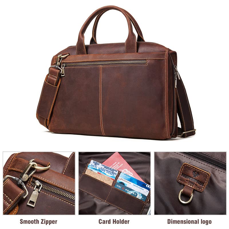 • Genuine Leather Mens Business Bag Briefcase, Leather Multifunctional Messenger Bag Large Capacity Retro Mens Bag, Laptop Bag