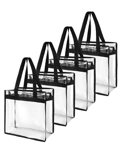 QWORK Transparent PVC Stadium Approved Tote Bags, 4 Pack 12x6x12 inches Clear Large Totes with Zipper Closure 1