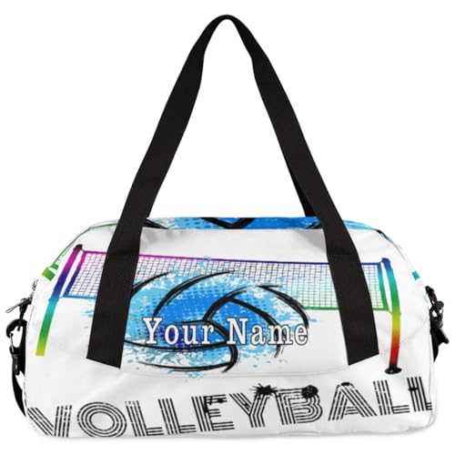 Personalized Kids Duffel Bag Art Swirl Volleyball Ball,Custom Sport Gym Bag for Boys Girls,WWeekender Overnight Bags Travel Duffel Bag,Customized Kids Gift 1