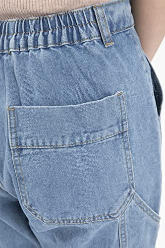 HOT ! Women's Elastic Waist Straight Leg Relaxed Fit Cargo Jeans Utility Casual Denim Cargo Outdoor Pants