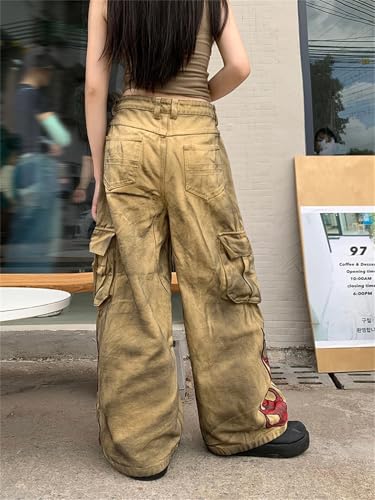More information about Women's Khaki Baggy Cargo Jeans Harajuku Oversize Denim Trousers Vintage Japanese Jean Pants