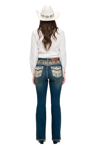 High Waisted-Rise Curvy Bootcut Jeans - Stretchy Embroidered Feather Flare Denim for Women 4