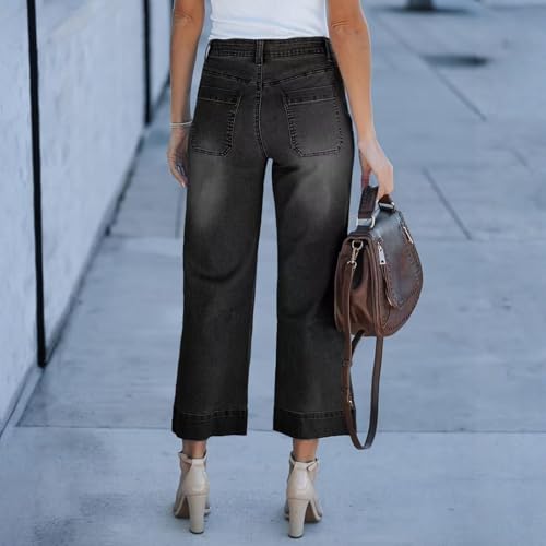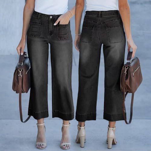 HOT ! High Waisted Jeans for Women Wide Leg Trendy Stretch Cropped Jeans Casual Loose Fit Denim Pants with Front Pocket