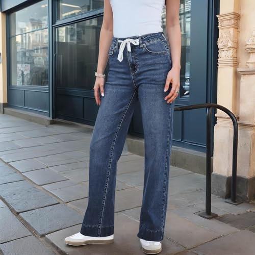More information about Woman Wide Leg Jeans High Waisted Stretch Drawstring Baggy Jeans Elastic Waist Womens Pull On Jean