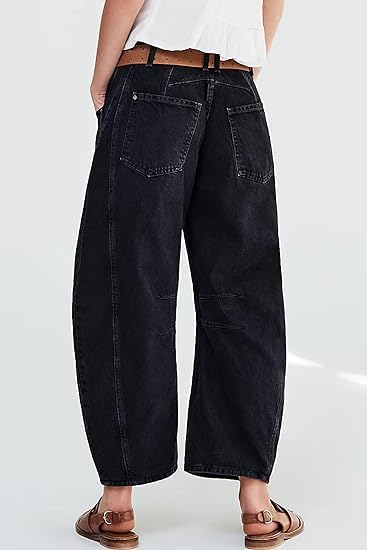 • ã WOMENS BARREL JEANS FABRICã‘Baggy wide-leg jeans, mid-rise barrel jeans, made of high quality fabric, lightweight and skin-friendly, durable and breathable,90s retro street style. Made from high quality denim fabric, these boyfriend horseshoe jeans are durable and guaranteed to be a staple in your closet for years to come.