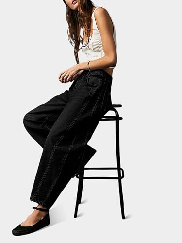 More information about Dokuritu Baggy Jeans for Woman Wide Leg Mid-Rise Denim Ankle Pants Boyfriend Jeans with Pockets