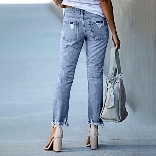 HOT ! Cropped Skinny Jeans for Women Trendy High Waisted Ripped Jeans Stretchy Petite Jean Capris Straight Leg Denim Cowgirl Pants